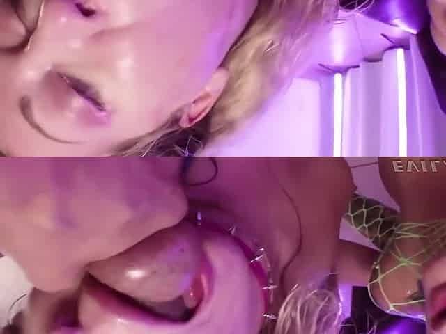 La bionda riceve una doppia penetrazione con una sborrata in faccia