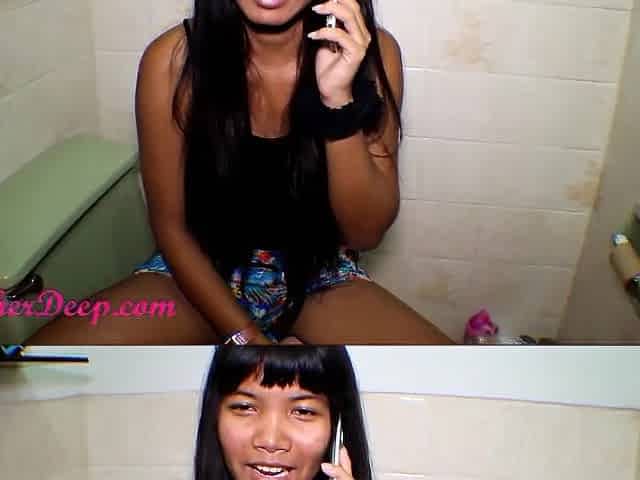 Tiny Asian Thai teen 18+ Heather Deep Films Herself Giving A Deepthroat Throatpie
