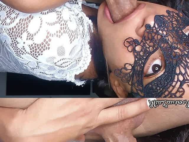 Sexy latin couple deep throat blowjob and throatpie