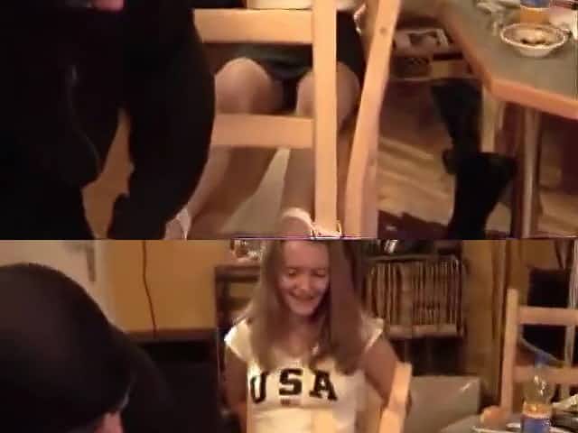Masseuse Blowjobs While Tickling Her Muff Under The Table