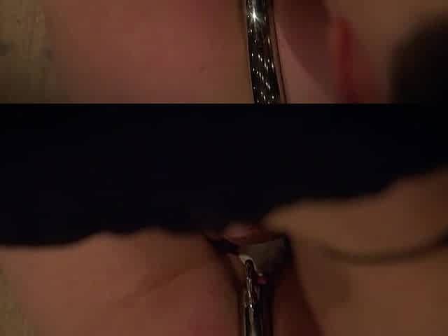 Clamped pussy lesbian caned in the gym