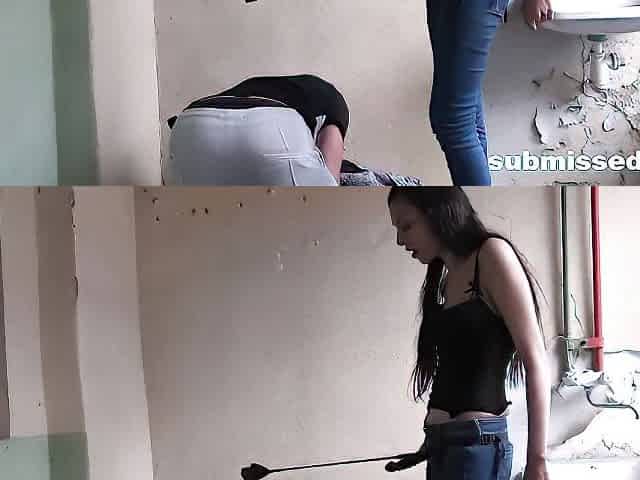 Blond Hair Girl anal sex fisting her tied up slave