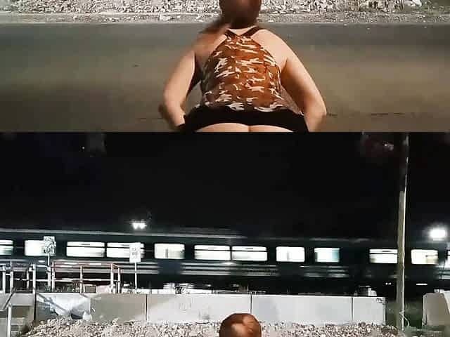 "girl showing vagina with semen without panties sex on the street"