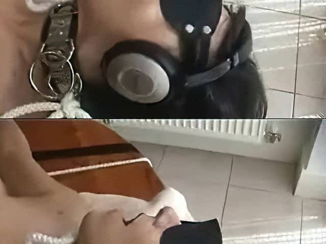 wife tied, cuffed and gagged, fucked in 3 holes