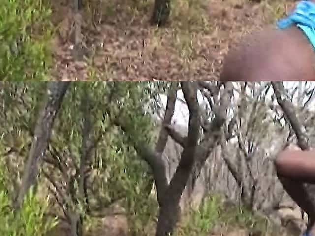 Cute African teen gets fucked in the forest while tied up