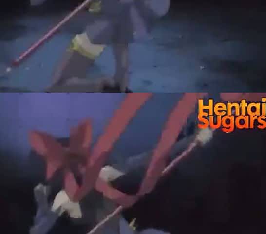 Tied up hentai chick gets her pussy fucked by this weird