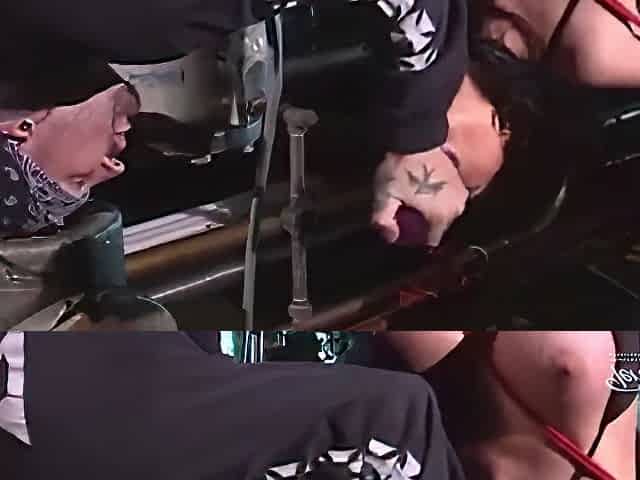 Licking tied lactating tits