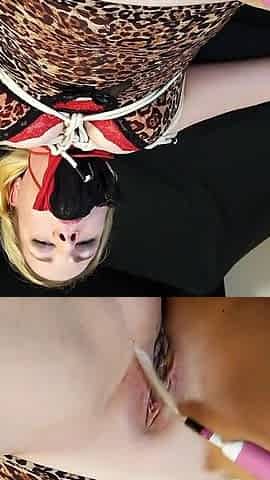 Hogtied lesbo gets tormented