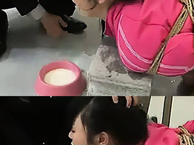 Tied up sex slave gets a bowl of piss poured on her face