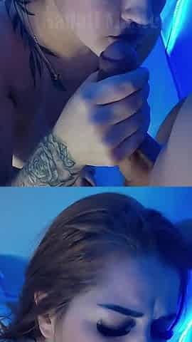 brunette gets deepthroated and banged in her tight snatch