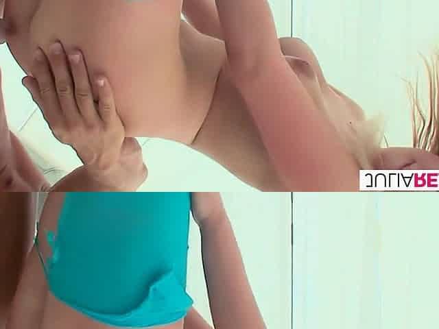 Cute-looking blonde model Ria is feeling a large dick in her tight crack