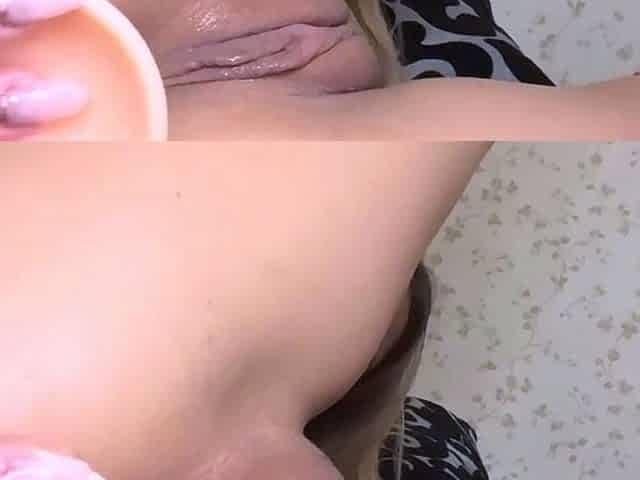Blonde creampie loving babe dildofucks her tight ass