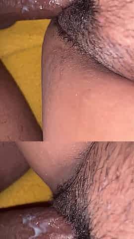 Close-up fucking of my tight pussy and his cum-eating