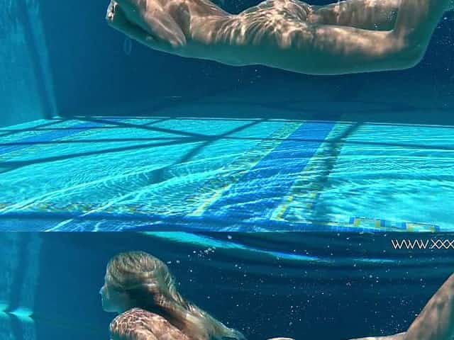 Brunette tight babe in the pool