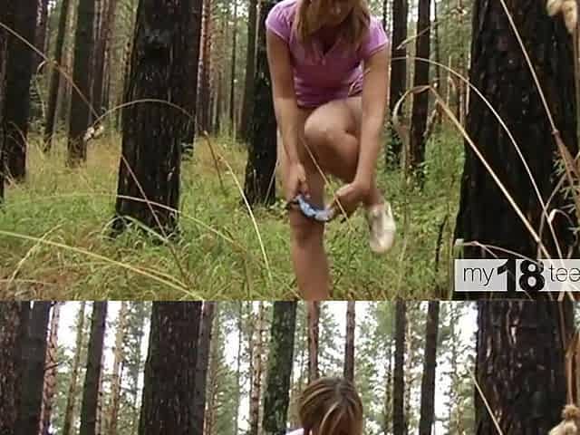 Desirable dark-haired chick masturbates the pussy deep in the forest