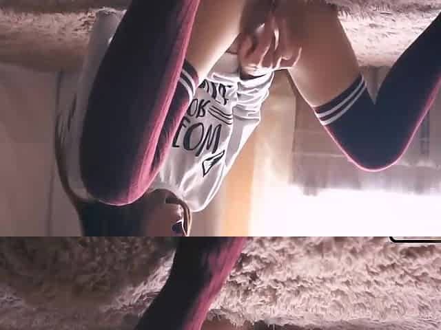 Solo closeup video of cute Flora Y fingering her shaved pussy