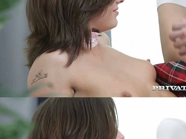 Sexy college girl in glasses Sandra Wellness fucks her teacher