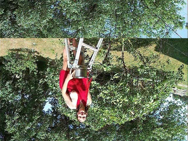 Голая русская эксгибиционистка на поле в лесу на озере