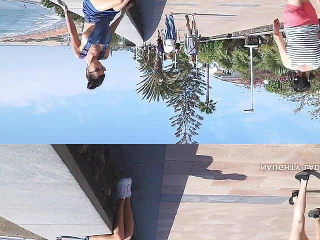 Russian exhibitionist mom flashing shaved pussy in Spain - Jeans skirt Public fetish