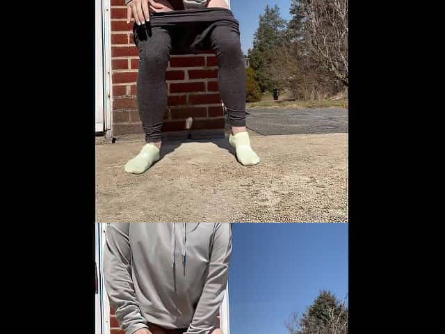 Squatting and pissing outside after working out