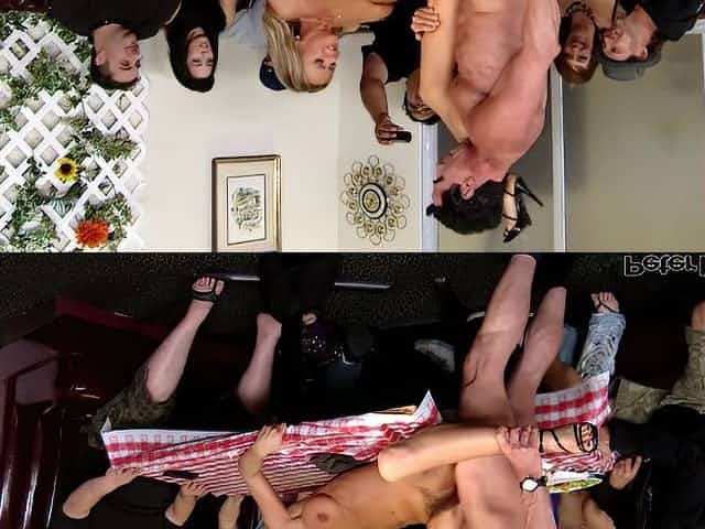 Outdoor naked exposed babe group public fucked in hair salon