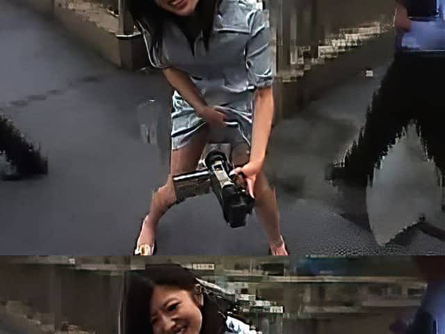 Super-Naughty Japanese dark-haired is showcasing her butt in a public place, because it arouses her a bunch