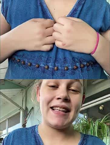 Pulled blonde flashing her big nipples