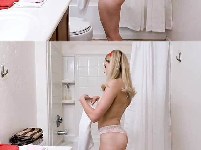 Pretty stepdaughter Aften Opal is waking a shower