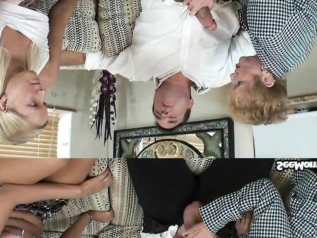 Busty fair haired MILF Alexis Fawx gives sloppy DT to several horny dudes by turn