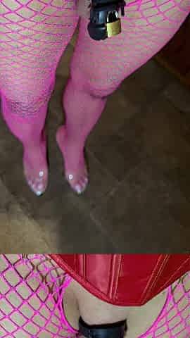High heels and fishnets in chastity