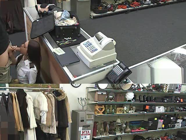 Pretty babe gets boned by pawnshop owner in the toilet