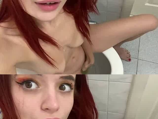 Petite redhead in pigtails loves to indulge in water sports