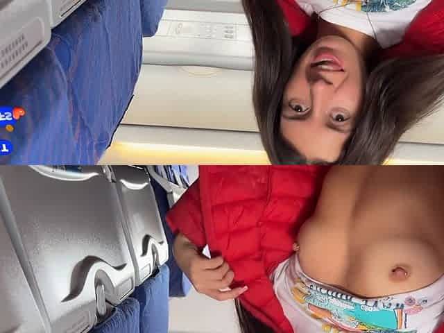 Can't resist milking his cock on a packed plane full of people - public showtime
