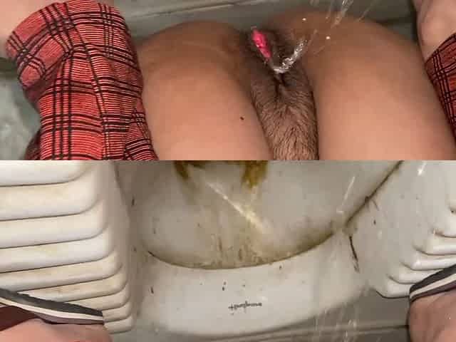 asian girl pissing in toilet