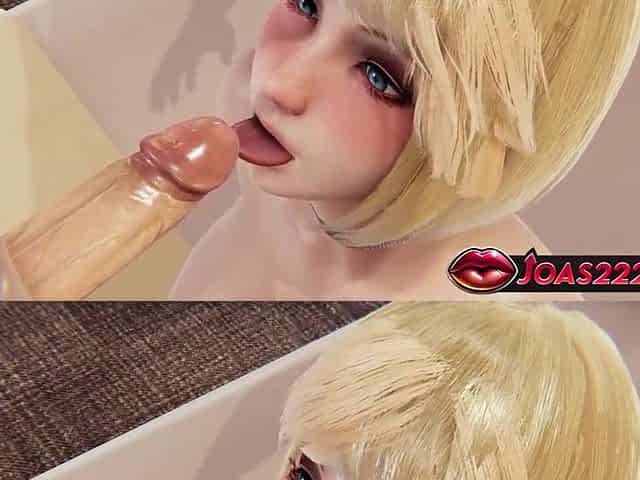 Blonde Mina Slow Tongue Likcking, Deepthroat Cumshot 3D Animation