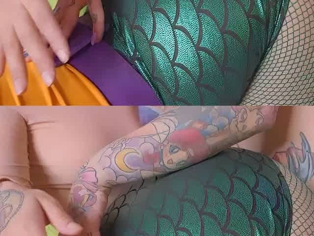 Wet tattooed raven babe Sahron with big boobs masturbates