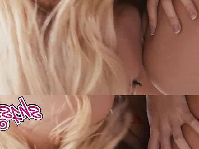 Blonde and brunette lesbo licking and fingering
