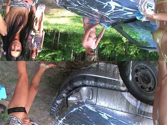 Topless college women erotically wash car at the picnic