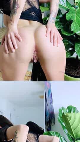 Horny Blonde Tgurl shows off her big ass then masturbate