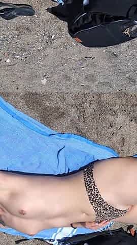 Topless Sunbathing On A Towel On A Public Beach Flashing My Tits