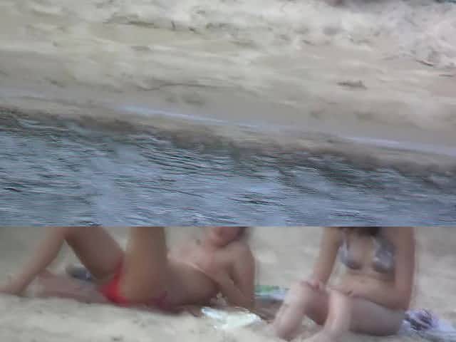 Beach spy voyeur captures two friends sunbathing topless