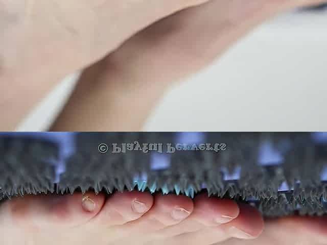 Barefoot girl walking on acupressure spike mat & massage ball
