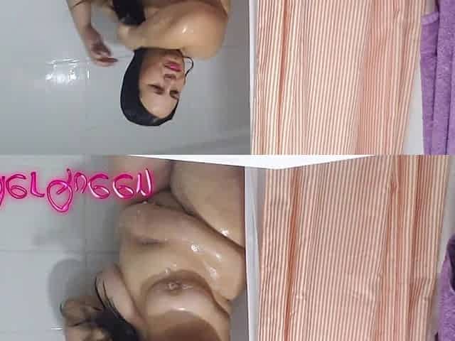 BBW Step Mom in the Shower Sensually Touching Herself