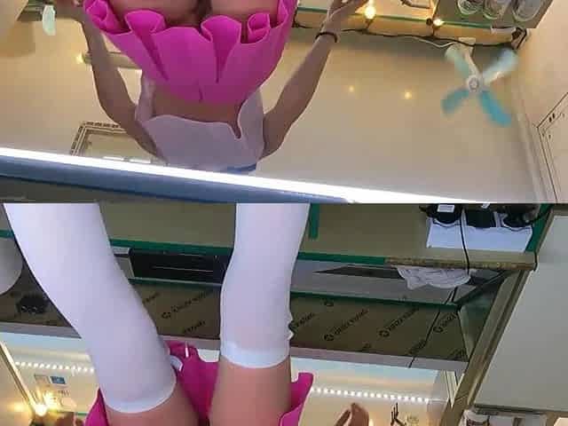 Slender Asian model May Thai is touching her wide-opened hole