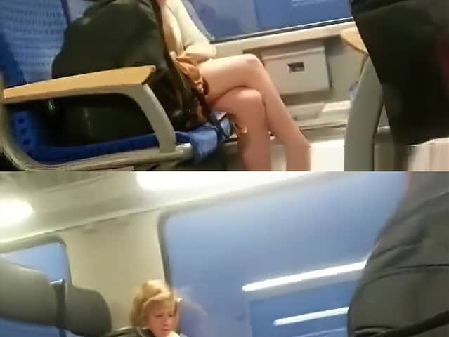 Girl in train filmed between legs