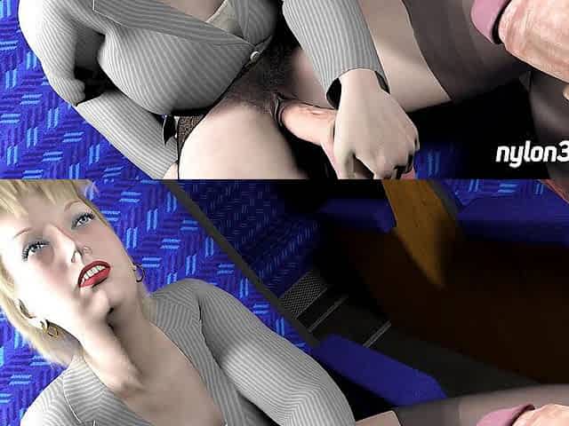 3D HENTAI Guy masturbates the pussy of the college girl in the train