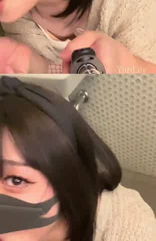 Japanese shemale jerks dick and sucks dick in public restroom