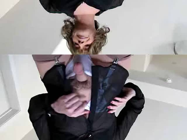 Chick sucks tranny and guy at same time