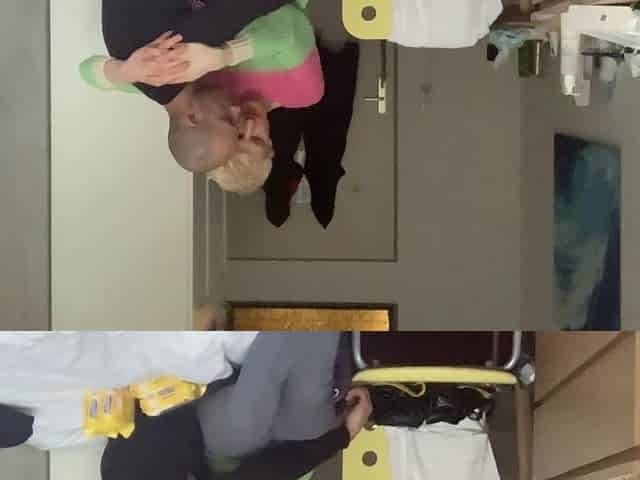 trans in pantyhose sits astride a dildo
