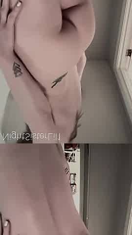 Tattood shemale tranny plays with ass during masturbation
